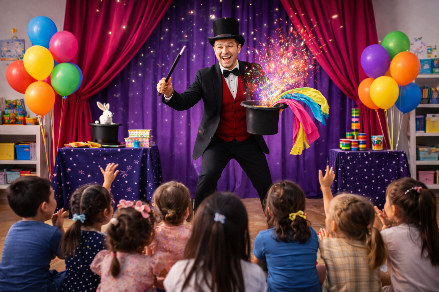 To wydarzenie, w którym niemożliwe staje się możliwe. Iluzjonista zabiera dzieci w magiczną podróż pełną zaskoczeń, śmiechu i momentów „wow”. Dzieci nie tylko oglądają niezwykłe sztuczki, ale także aktywnie uczestniczą w pokazie, odkrywając, że magia rodzi się z wyobraźni i w wspólnej zabawie. Radość, zdumienie i iskra w oczach – to właśnie magia.