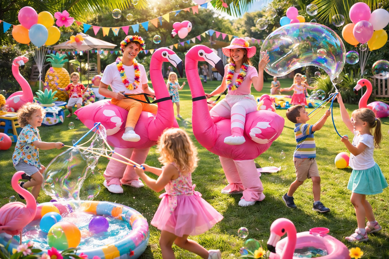 to prawdziwa eksplozja kolorów, ruchu i dziecięcej radości. Letnia atmosfera, animatorzy w kostiumach flamingów, spektakularne pokazy, wspólne tworzenie ogromnych baniek i mnóstwo ruchowych zabaw sprawiają, że dzieci od pierwszej minuty zanurzają się w wakacyjnej przygodzie