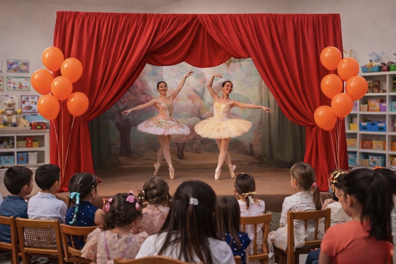 To wydarzenie, które wycisza, zachwyca i przenosi dzieci do świata subtelnej magii. Dwie baletnice opowiadają historię tańcem – bez słów, ale pełną emocji, przyjaźni i piękna ruchu. Dzieci obserwują, przeżywają, a następnie same wchodzą w świat baletu podczas warsztatów, odkrywając radość płynącą z ruchu i muzyki. To niezwykłe połączenie sztuki, emocji i twórczego doświadczenia. Dedykowane zarówno dla przedszkoli jak i żłobków.