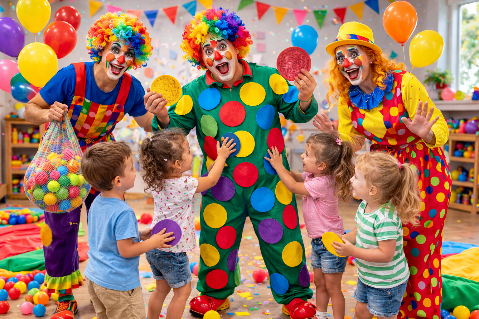 Autorski program animacyjno-ruchowy z wyraźną fabułą i efektownym finałem budującym napięcie od pierwszych minut wydarzenia. Dzieci poprzez starannie zaplanowane zadania zespołowe i dynamiczne aktywności pomagają klaunowi odzyskać kolory, obserwując na własne oczy jego spektakularną przemianę. To dopracowane, energetyczne widowisko łączy elementy teatru, ruchu i pracy zespołowej w spójne doświadczenie, które integruje grupę, wzmacnia pewność siebie i daje dzieciom realne poczucie wpływu na przebieg historii. Program zaprojektowany tak, by angażować całą grupę i pozostawić po sobie efekt „wow”, o którym dzieci mówią jeszcze długo po wydarzeniu.