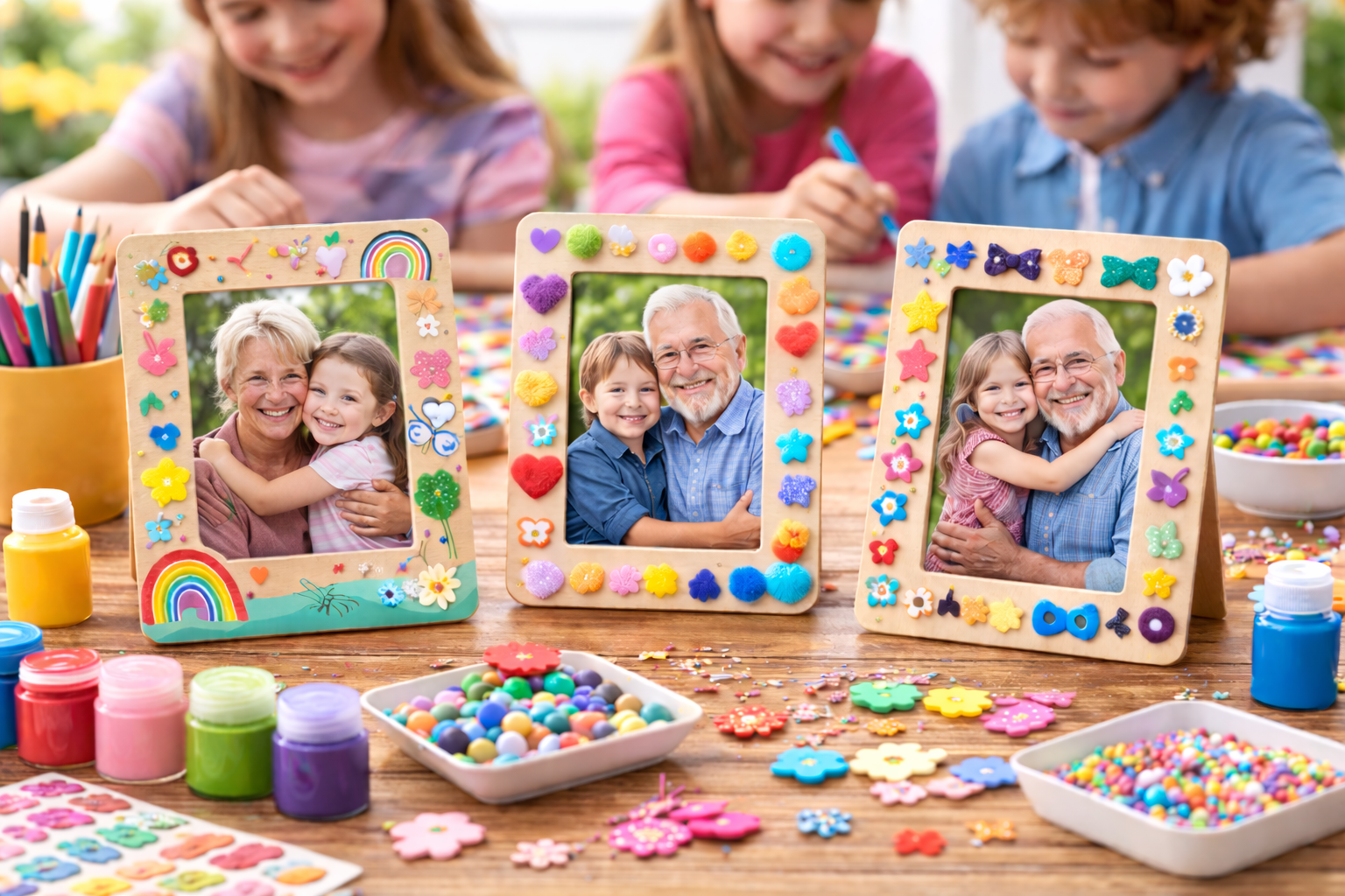 Podczas warsztatów dzieci stworzą piękny prezent dla Babci i Dziadka – własnoręcznie ozdobione ramki na zdjęcia. Każdy uczestnik przygotuje dwie drewniane ramki, które pomaluje i udekoruje kolorowymi materiałami plastycznymi. To kreatywna zabawa, która rozwija wyobraźnię i pozwala dzieciom przygotować pamiątkę pełną emocji i miłości. Gotowe ramki można wypełnić wspólnym zdjęciem, tworząc wzruszający upominek, który dziadkowie będą mogli zachować na lata.