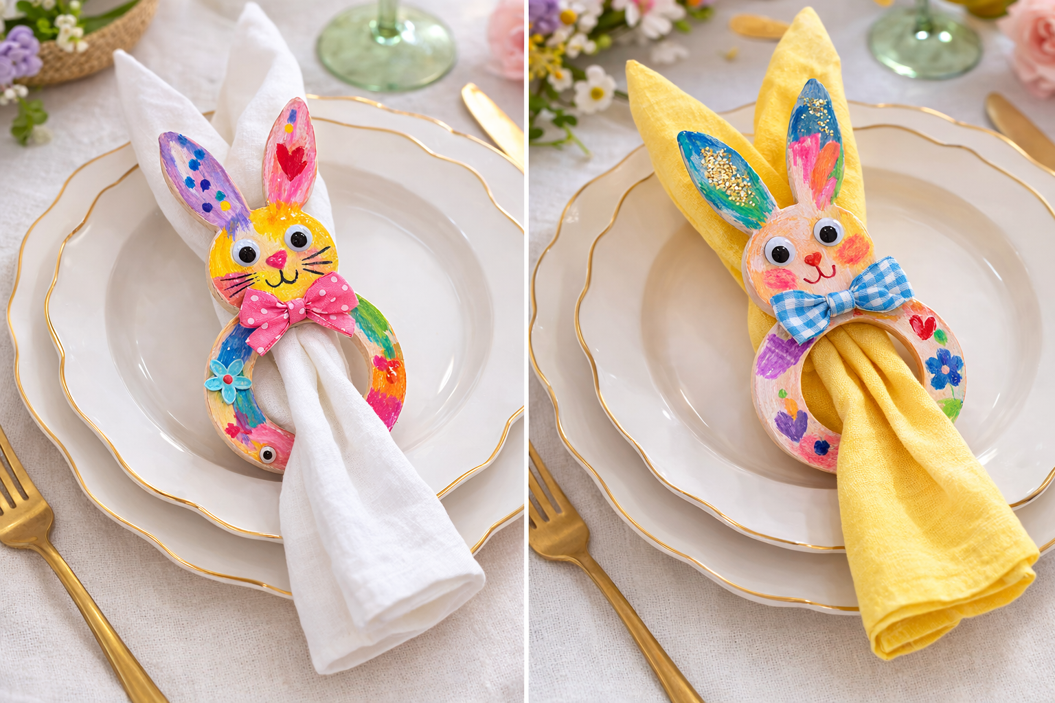 Podczas warsztatów każde dziecko przygotuje 4 drewniane serwetniki w kształcie zajączków lub wielkanocnych pisanek, które samodzielnie pomaluje, ozdobi i udekoruje według własnego pomysłu. Używamy bezpiecznych farb, markerów oraz świątecznych dodatków, dzięki którym powstaną wyjątkowe, ręcznie wykonane dekoracje na wielkanocny stół.