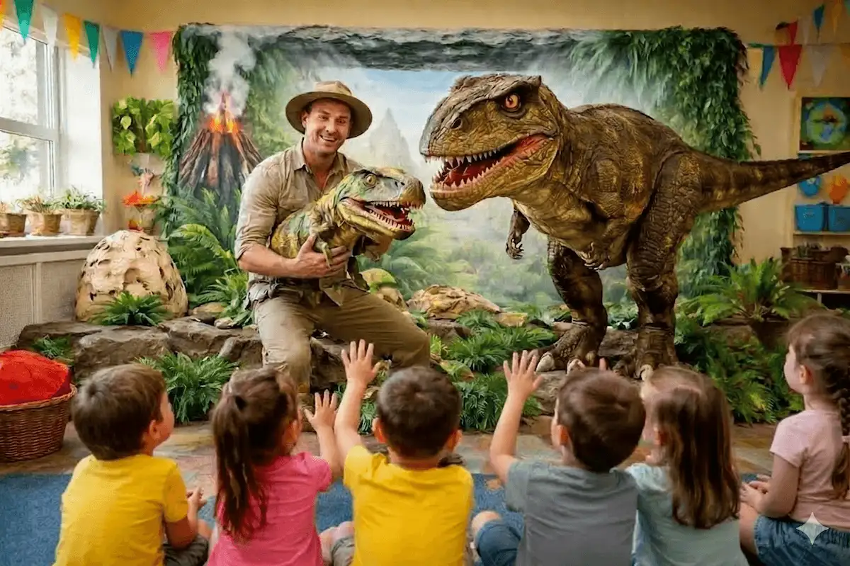 Przygoda w świecie prehistorii, która zamienia przedszkolny ogród w teren wielkiej jurajskiej ekspedycji. Dzieci wcielają się w młodych odkrywców, podążają śladami dinozaura, biorą udział w wykopaliskach i misjach ruchowych, a na zakończenie spotykają prawdziwego jurajskiego gościa. Dużo ruchu, emocji i radosnego odkrywania!